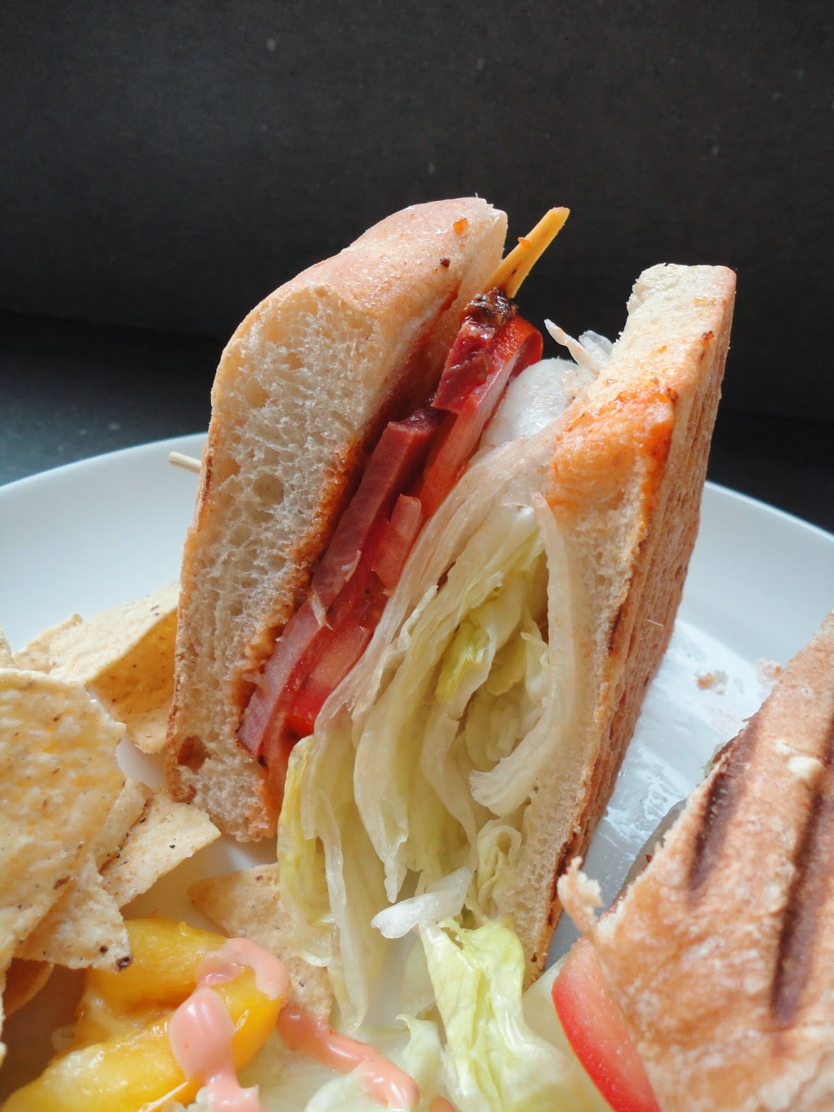 肋醬有點辣,不過在這份清爽的三明治裡增添一種重口味的嗆辣,和生菜(水份瀝得不夠乾,擺久了麵包內裡有點濕)、起士相互中和之下其實味道不賴,不過太過清淡但又不失清爽。