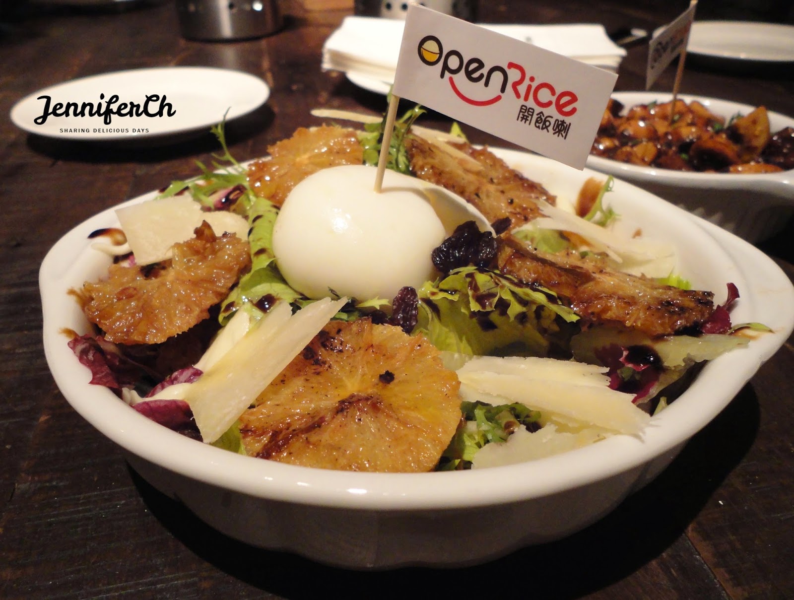 中間那顆圓圓白白的是半熟水煮蛋沒錯~淋上巴薩米克油醋,整道下來有種溫沙拉的感覺,好喜歡!