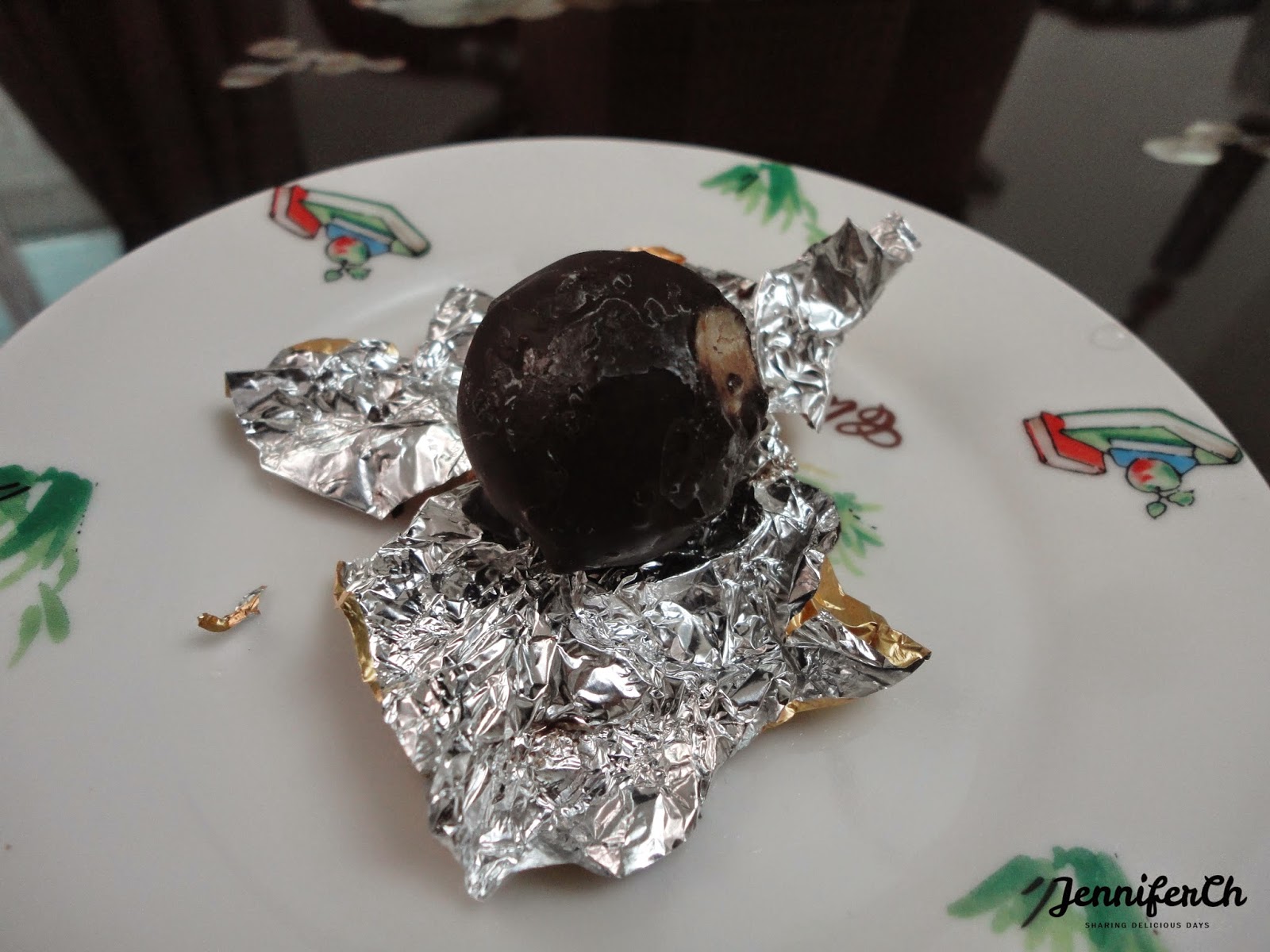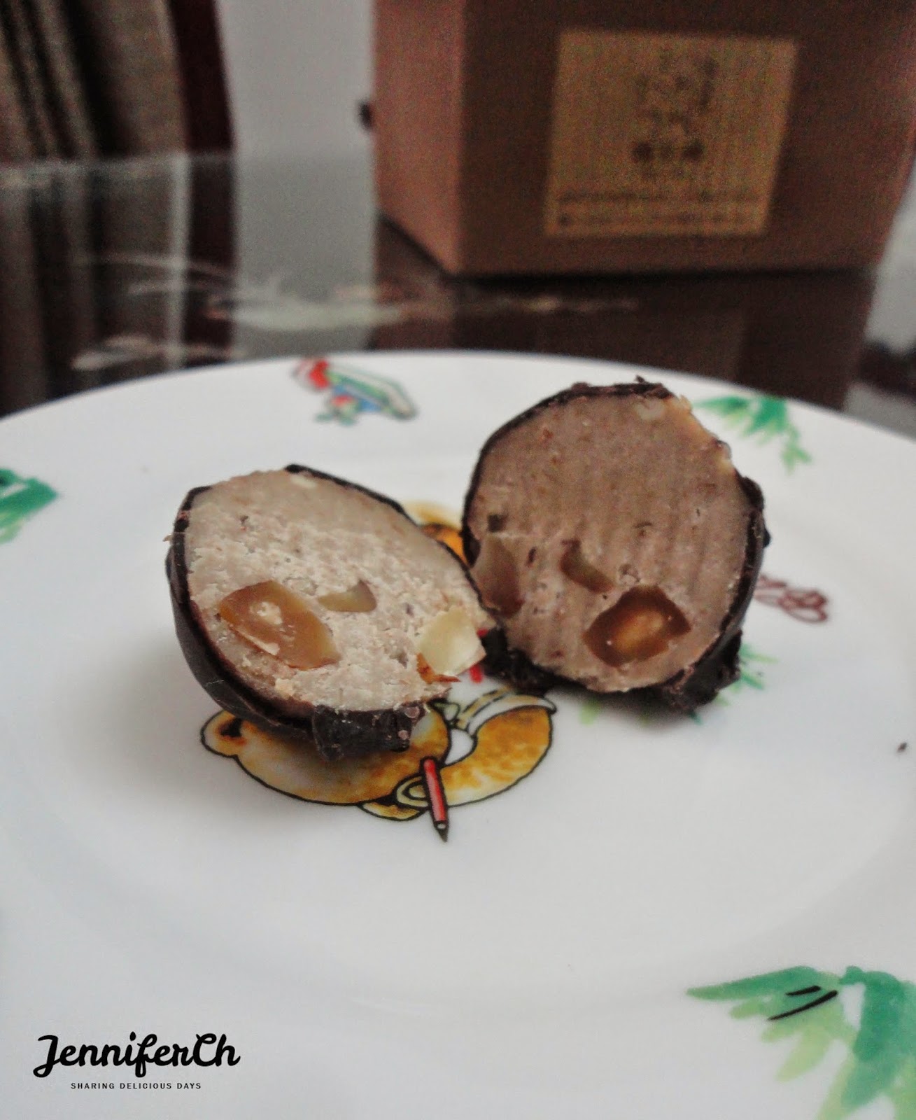 以巧克力為外皮,中間用乳酪拌入蔓越梅製作而成。