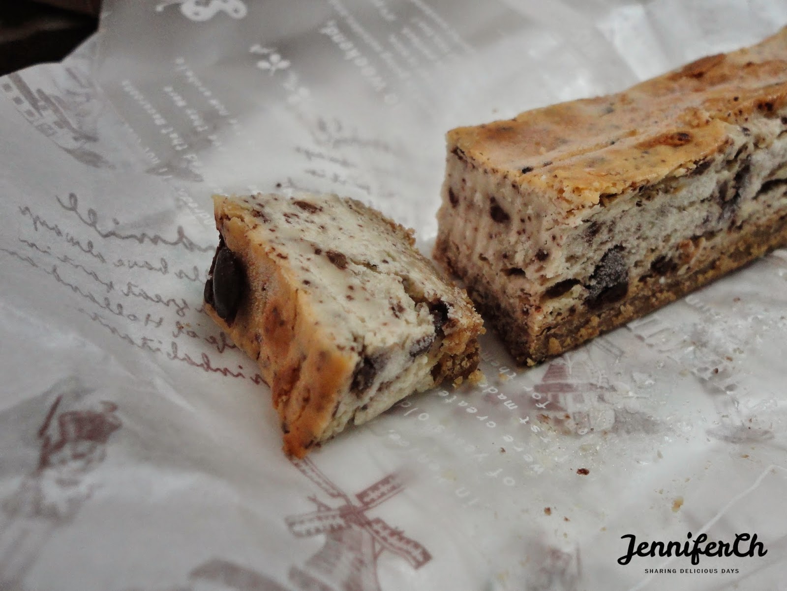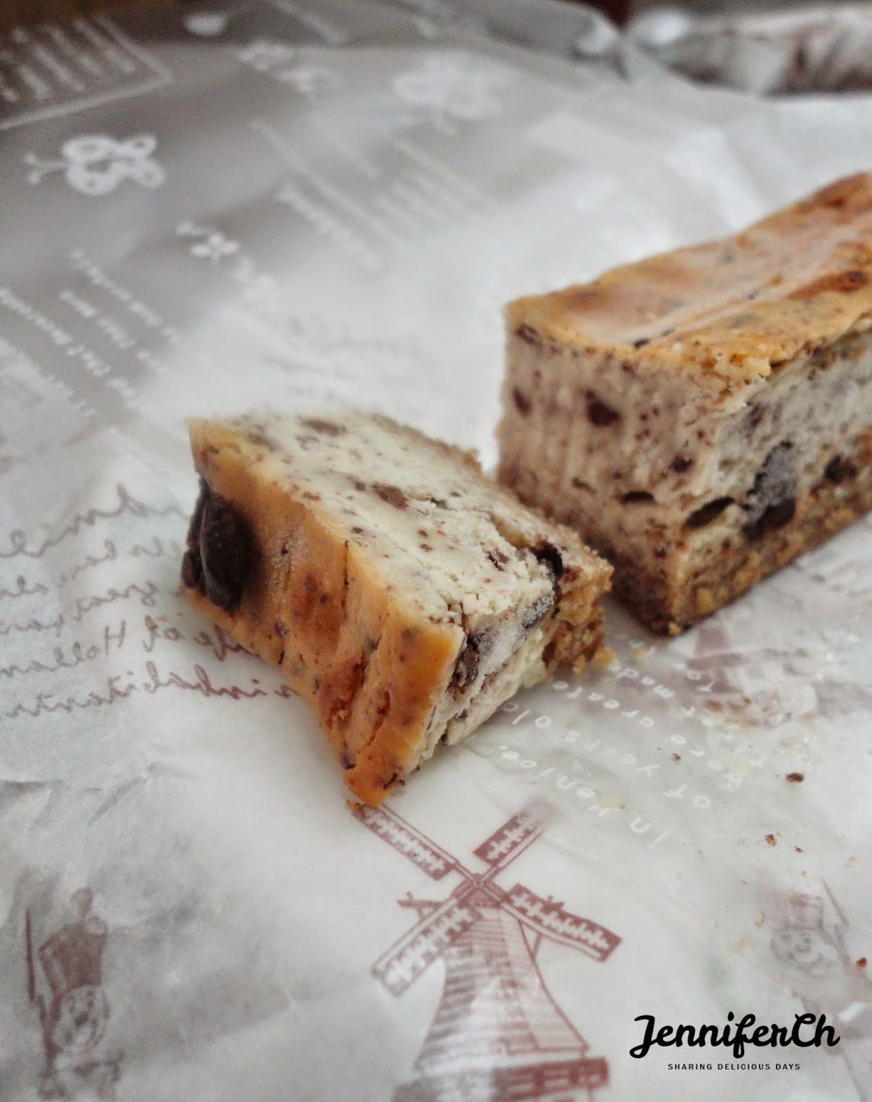 一咬下去,巧克力的香氣跟微苦的滋味迸發,伴著低甜度,是融合得很好的巧克力乳酪!