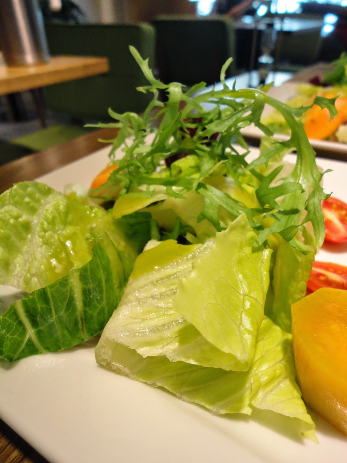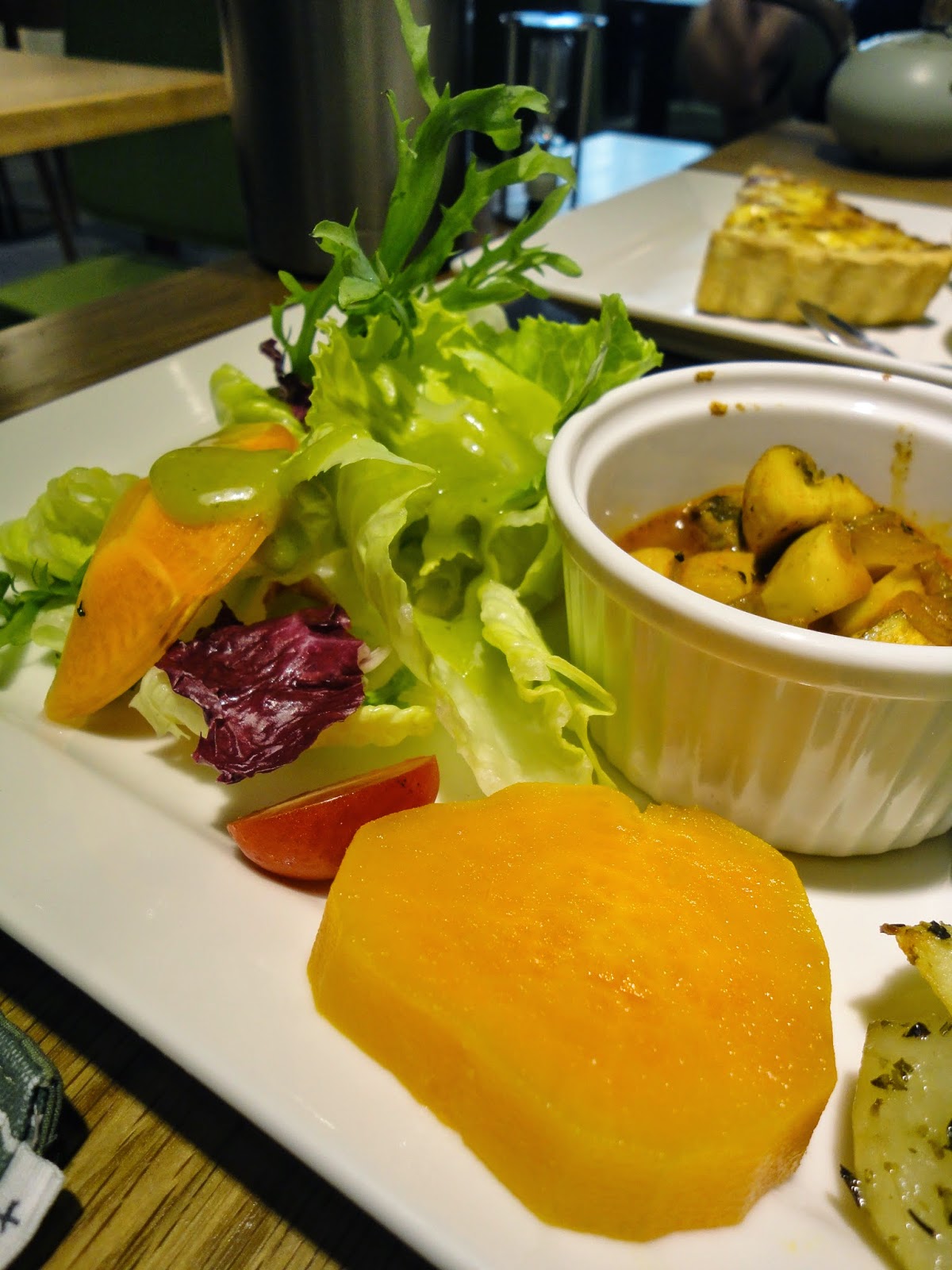 沙拉,淋上特別的蜂蜜茶芥末(我自己取的:P),平時較為油膩的蜂蜜芥末此時襯上茶香,並且不厚重地清爽。