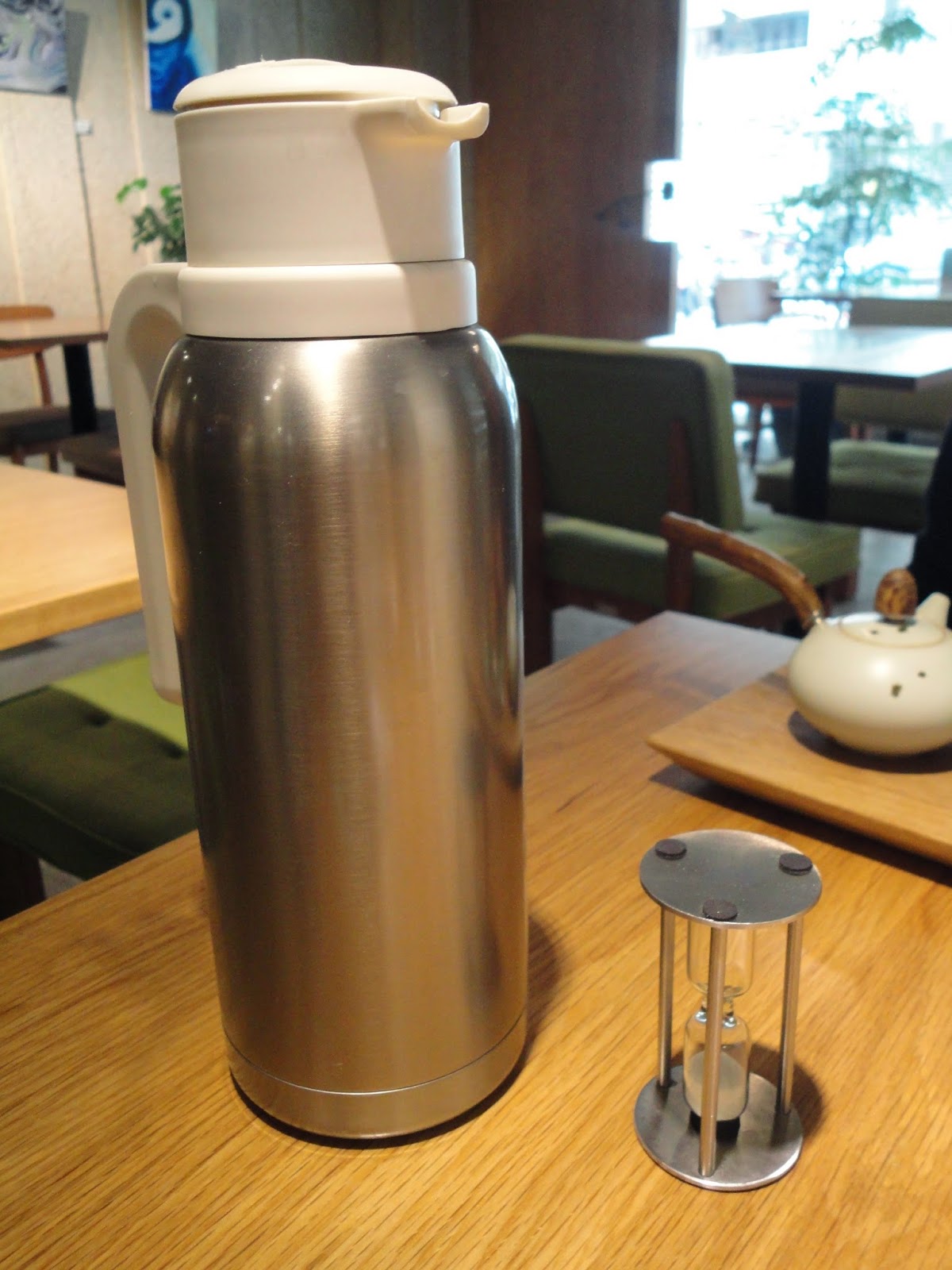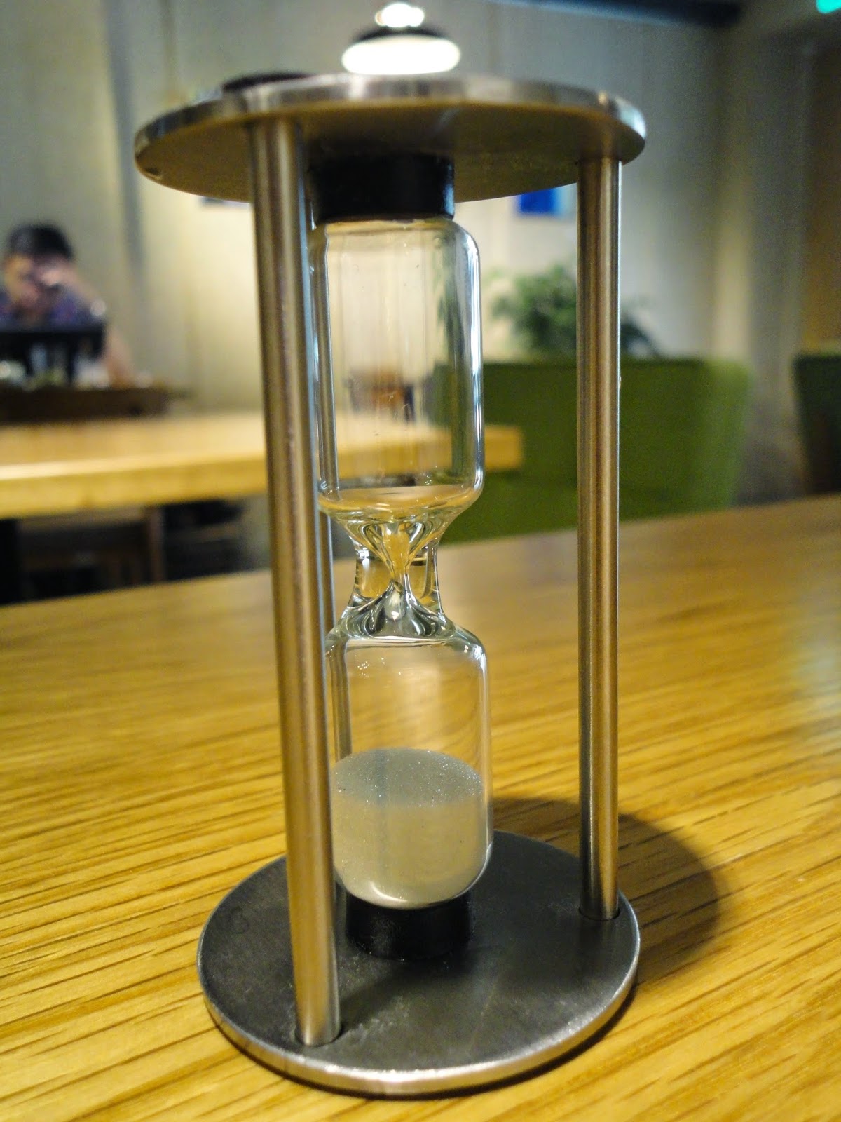 然後附上熱水壺跟沙漏,第二泡等待一分鐘,第三泡等待兩分鐘... 依此類推,好有趣!