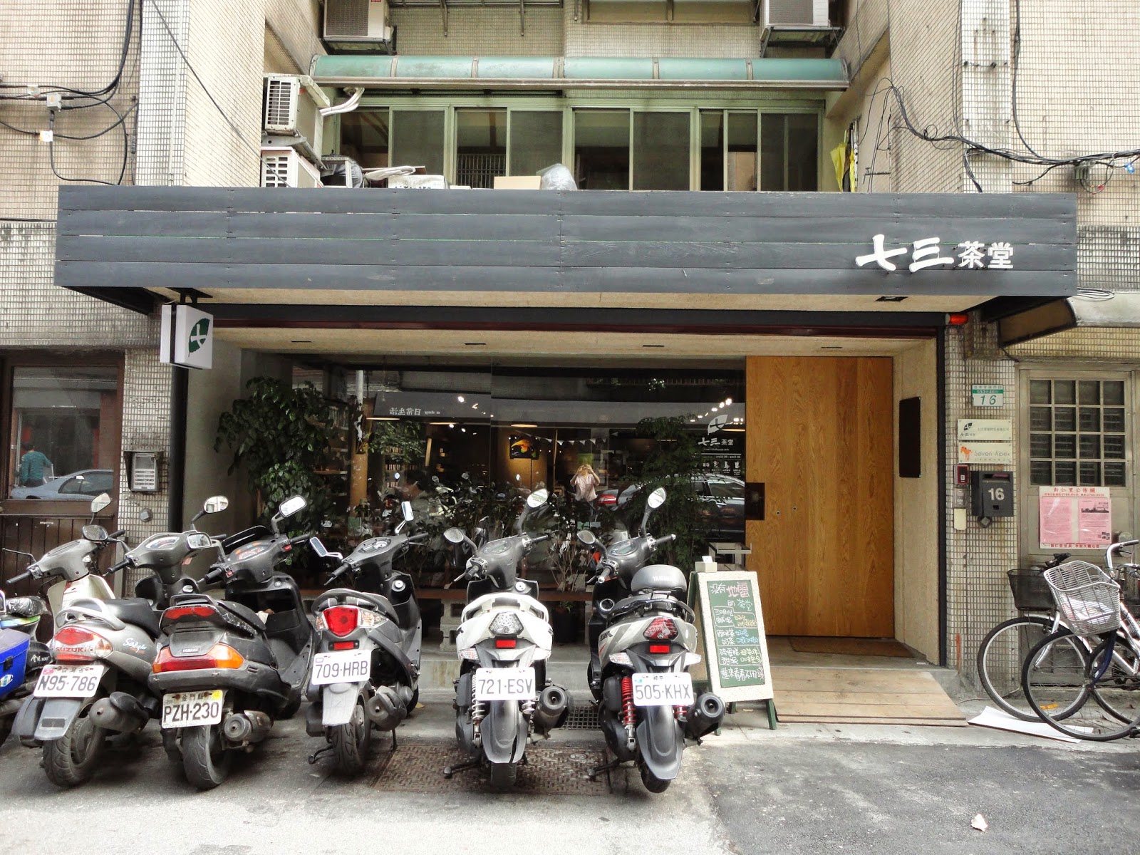 一旁的復古腳踏車,還有七三茶堂的標識。