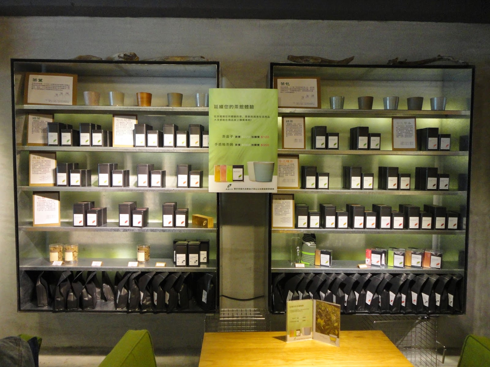 牆上販售各式茶類商品。