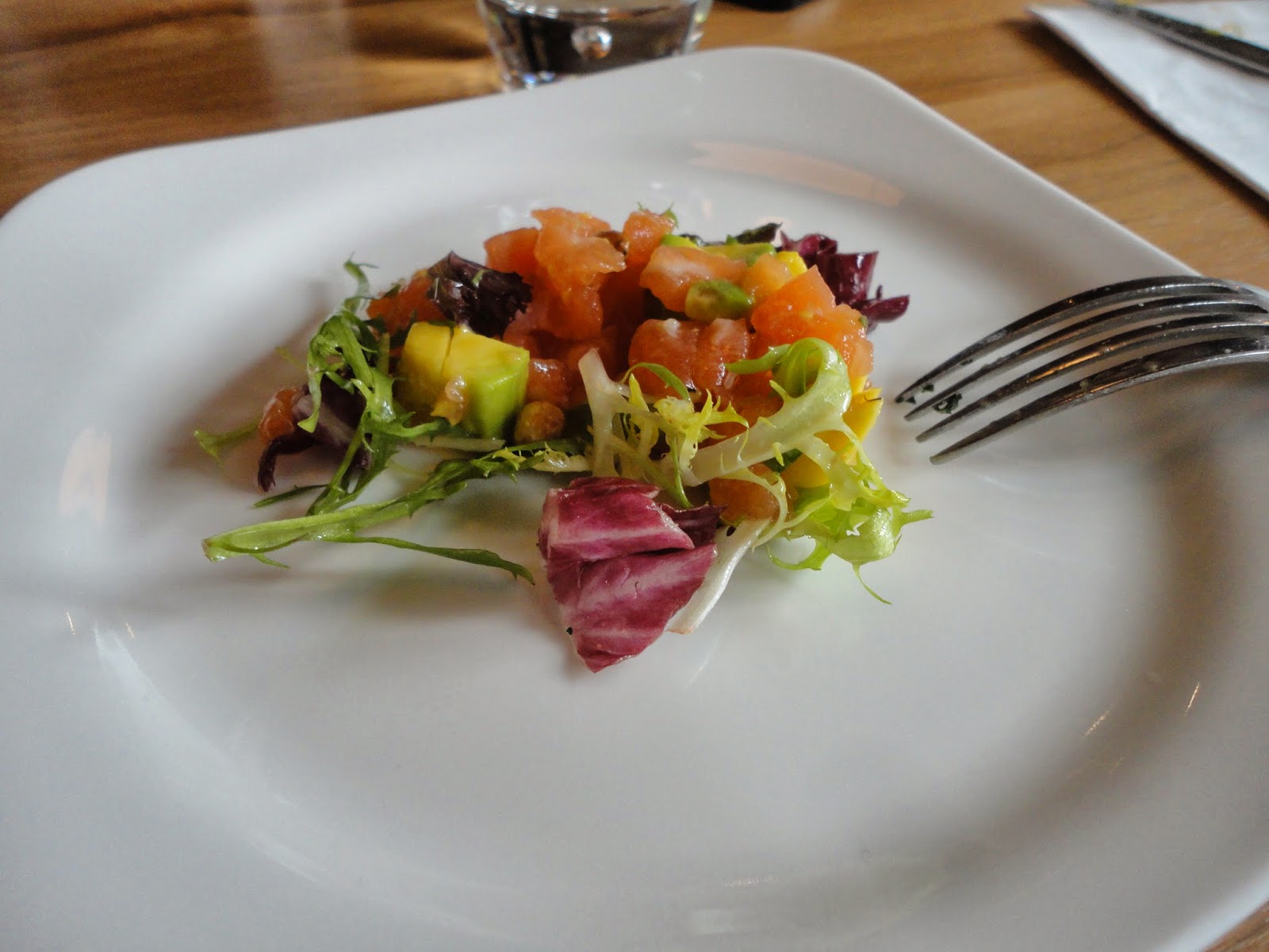 鮭魚跟酪梨都切成丁狀,原本擔心口感上會不夠扎實,沒想到兩者交互搭配的微妙,口感滑潤而滋味清爽。